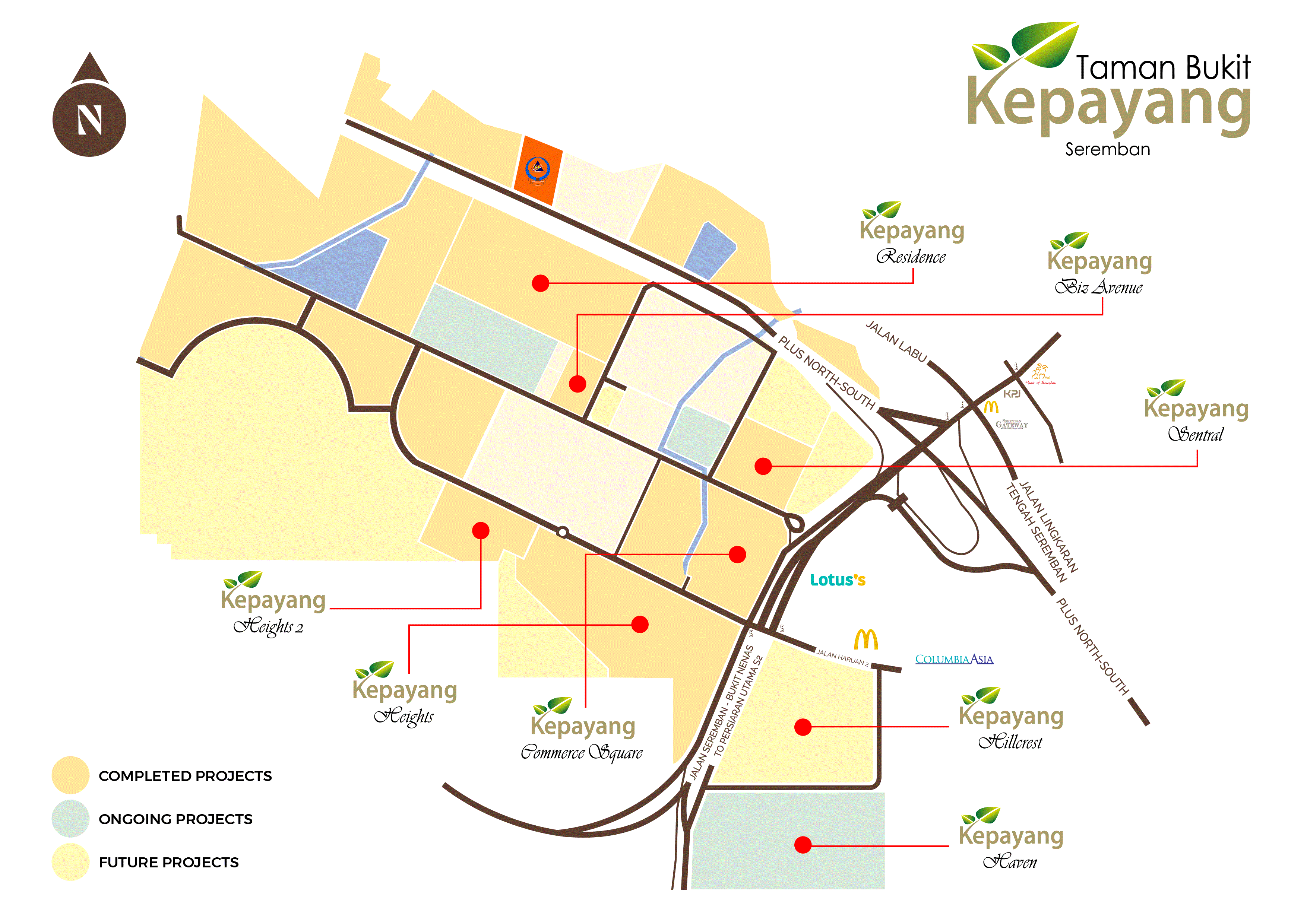Taman Bukit Kepayang is a mixed development comprising residential and commercial components by GUH Properties Sdn. Bhd. Situated in Seremban’s most strategic location, Taman Bukit Kepayang is a well-planned township that offers modern living within a gated and guarded community. With a multitude of versatile layouts and green attractions for a harmonious and modern lifestyle. The Philosophy of Taman Bukit Kepayang is to focus on balancing individualism and community. Designed to entice and to create space with every aspect of wellbeing in mind.
